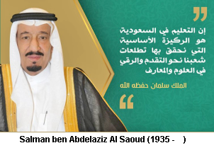 Il conseille aux jeunes de s’immerger dans la langue arabe et de servir leur religion et leur nation à travers elle, tout en les mettant en garde contre un vocabulaire qui pourrait lui nuire. Le roi estime aussi que l’apprentissage des langues étrangères n’est pas incompatible avec la maîtrise de l’arabe. Il encourage les jeunes à apprendre d’autres langues et à approfondir leurs connaissances scientifiques dans leurs domaines respectifs. Le roi Salmane croit que l’arabe est une langue vivante qui influence et est influencé par d’autres langues. Voici la traduction du texte ci-contre du roi Salmane ben Abdelaziz: «L’enseignement en Arabie saoudite constitue le pilier fondamental à travers lequel nous réalisons les aspirations de notre peuple au progrès et à l’élévation dans les sciences et les savoirs.» Ce genre d'affirmation n'a pas manqué de susciter l’ironie, car elle intervient après des décennies durant lesquelles un wahhabisme radical et aliénant a profondément meurtri l’âme du peuple saoudien et, au-delà, celle de nombreux pays musulmans. |